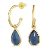 12 mm mørkeblå krystal halvcreoler i forgyldt sølv med blank overflade og 2 glatte mørkeblå mørkeblå krystaller.