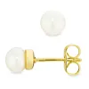 5 mm perle ørestikker i forgyldt messing med blank overflade 2 hvide syntetiske perler.