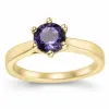 ametyst solitairering i 14 karat guld med blank overflade og 1 facetslebne ametyster