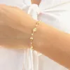 multifarvet armbånd i forgyldt messing med blank overflade og glat grøn amazonit og glat rosa kvarts hvid syntetisk perle.