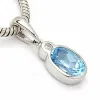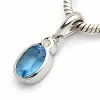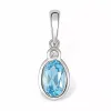 blå topas vedhæng i 9 karat hvidguld med blank overflade og 1 facetslebne lyseblå topaser og 1 facetslebne hvide zirkoner.