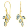 blad blå krystal øreringe i forgyldt sølv med blank overflade og glat blå krystal og glat lyseblå krystal.