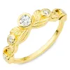 blad zirkon ring i forgyldt messing med blank overflade og facetsleben hvid zirkon.