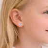 børneøreringe i sølv med blank overflade og glat lilla emalje og glat blå emalje.