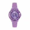 Uret har en urrem af lilla silikone.