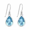 dråbe ørekroge i sølv med blank overflade og 2 facetslebne blå krystaller.