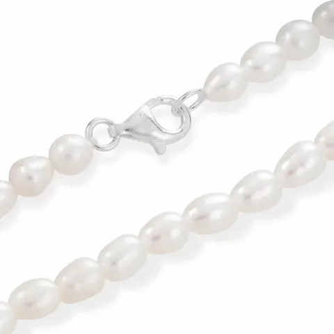 Perlehalskæde med Ellipseformet hvid ferskvandsperle.