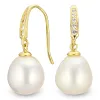 perle øreringe i 14 karat guld med blank overflade og 10 facetslebne hvide zirkoner og 2 Ærteformede hvide ferskvandsperler.