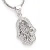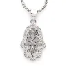 fatimas hånd vedhæng i sølv med blank overflade og facetsleben hvid zirkon.