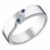 safir ring i sølv med blank overflade og 1 facetslebne hvide zirkoner og 2 facetslebne blå safirer.