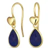 hjerte dråbe jadesten ørekroge i forgyldt sølv med blank overflade og 2 glatte blå jadesten.