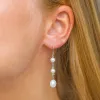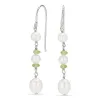 lange perle øreringe i rhodineret sølv med blank overflade og 4 facetslebne grønne ametyster og 6 hvide ferskvandsperler.