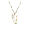 kat halskæde i forgyldt sølv med blank overflade og glat hvid emalje og glat pink emalje.