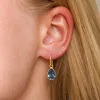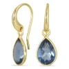 dråbe blå mørkeblå krystal øreringe i forgyldt messing med blank overflade og 2 facetslebne blå iolitter.