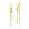 lange kæde øreringe i forgyldt messing med blank overflade og glat blå amazonit og glat rosa kvarts og glat grøn prehnite.
