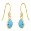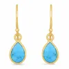 lange øreringe i forgyldt sølv med blank overflade og 2 facetslebne grønne turkise.