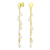 Lange hvid perle øreringe i forgyldt messing - Eliné