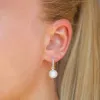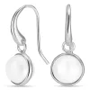runde perle øreringe i sølv med blank overflade 2 hvide perler.