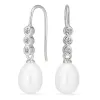 lange perle øreringe i sølv med blank overflade og 6 facetslebne hvide zirkoner 2 hvide ferskvandsperler.