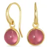 Runde pink krystal øreringe i forgyldt messing - Loom Stones