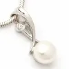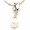 langt hvid perle vedhæng i rhodineret sølv med blank overflade og 1 facetslebne hvide zirkoner og 1 hvide ferskvandsperler.