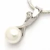 Langt hvid perle vedhæng i rhodineret sølv