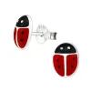 mariehøne øreringe i sølv med blank overflade og glat multifarvet emalje.
