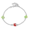 mariehøne armbånd i sølv med vedhæng i sølv med blank overflade og facetsleben rød emalje og facetsleben grøn emalje.