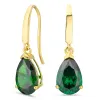 dråbeformede øreringe i 14 karat guld med blank overflade og facetsleben grøn smaragd og facetsleben hvid zirkon.