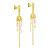 månesten øreringe i forgyldt messing med blank overflade og glat multifarvet månesten og glat rosa kvarts.