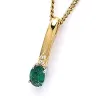 ovalt vedhæng i 9 karat guld og 9 karat hvidguld med blank overflade og 2 facetslebne hvide zirkoner og 1 facetslebne grønne syntetisk smaragder.