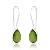 peridot øreringe i sølv med blank overflade og 2 facetslebne grønne peridoter.