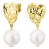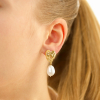 perle øreringe i forgyldt messing med struktureret overflade 2 hvide perler.