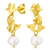 perle øreringe i forgyldt messing med mat overflade 2 hvide perler.