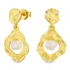perle øreringe i forgyldt messing med struktureret overflade 2 hvide syntetiske perler.