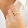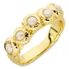 hvid perle ring i forgyldt messing med struktureret og blank overflade og 5 facetslebne hvide perler.