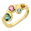 multifarvet ring i forgyldt messing med struktureret og blank overflade og facetsleben multifarvet turmalin.