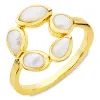 perle ring i forgyldt messing med blank og børstet overflade og glat hvid perle.