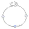 rund armbånd i sølv med vedhæng i sølv med blank overflade og 3 facetslebne blå krystaller.