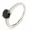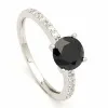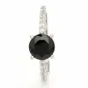 rund ring i 9 karat hvidguld med blank overflade og 1 facetslebne sorte zirkoner og 14 facetslebne hvide zirkoner.