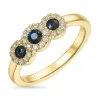 safir diamantring i 14 karat guld med blank overflade og 26 brillantslebne diamanter i Wesselton/SI og 3 facetslebne safirer