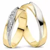 Damering i 14 karat guld.- og hvidguld med 5 brillantslebne diamanter Wesselton/VS på ialt 0,08 ct.