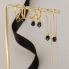 Sorte zirkon kæde øreringe i forgyldt sølv - Loom Stones