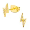lyn øreringe i forgyldt messing med blank overflade og facetsleben hvid zirkon.
