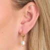 Studio Z creoler i forgyldt sølv med blank overflade 2 hvide perler. model: Perma