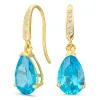 dråbeformede øreringe i 9 karat guld med blank overflade og facetsleben blå topas og facetsleben hvid zirkon.