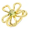 vandfast blomster grøn ring i forgyldt stål - OCEANA