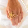 vandfast blomster justerbar ring i forgyldt stål med blank overflade.