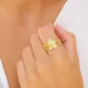 vandfast blomster ring i forgyldt stål med blank overflade.