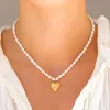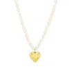 vandfast hjerte halskæde i forgyldt stål med blank overflade og facetsleben hvid zirkon hvid syntetisk perle.